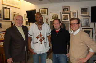 BLUE NOTE RECORDS SIGNS GUITARIST LIONEL LOUEKE.Blue Note Records proudly announces the signing of guitarist Lionel Loueke, one of the brightest and most original young stars in Jazz today. Loueke will enter the studio later this year to record his major label debut, which will be released in early 2008. The Jazz Journalist Association has also just nominated Loueke for Up & Coming Musician of the Year in their 2007 Jazz Awards. The winner will be announced later this month in New York City. Pictured at the signing in Blue Note Records’ Manhattan office are (L-R): Bruce Lundvall (CEO & President, Blue Note Label Group), Lionel Loueke, Eli Wolf (Vice President, A&R, Blue Note Records), Zach Hochkeppel (General Manager, Blue Note Records) |